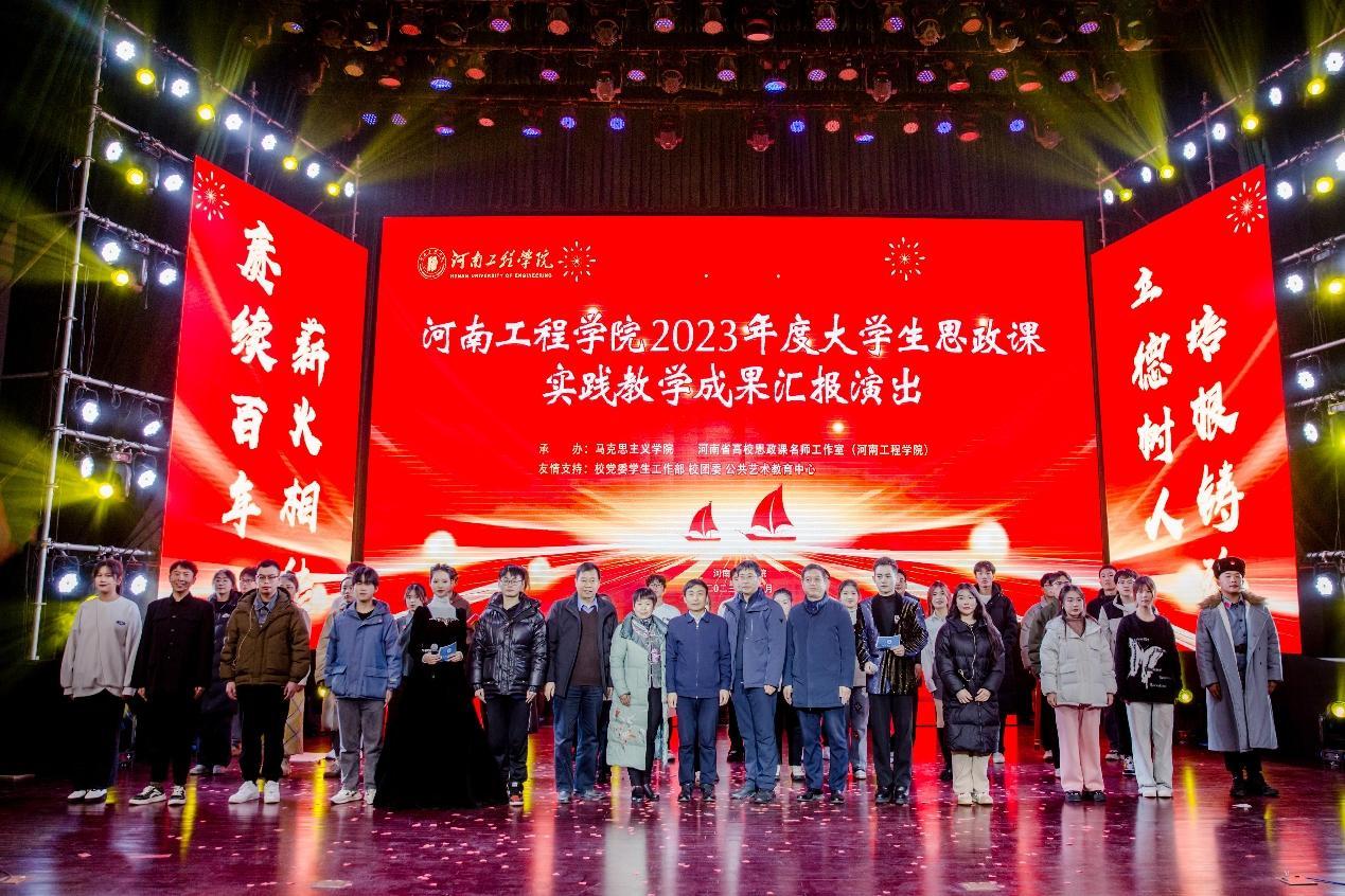 为推进学习贯彻习近平新时代中国特色社会主义思想走深走实,进一步发挥思政课立德树人的关键课程作用,不断增强思政课的亲和力和针对性,构建三全育人五育融通思想政治工作体系,高质量推进“大思政课”建设,由马克思主义学院和河南省高校思政名师工作室(437必赢会员中心) 共同策划筹办的“2023年度大学生思政课实践教学成果汇报演出”于12月13日下午在必赢官网西区创新创业中心大礼堂举行。